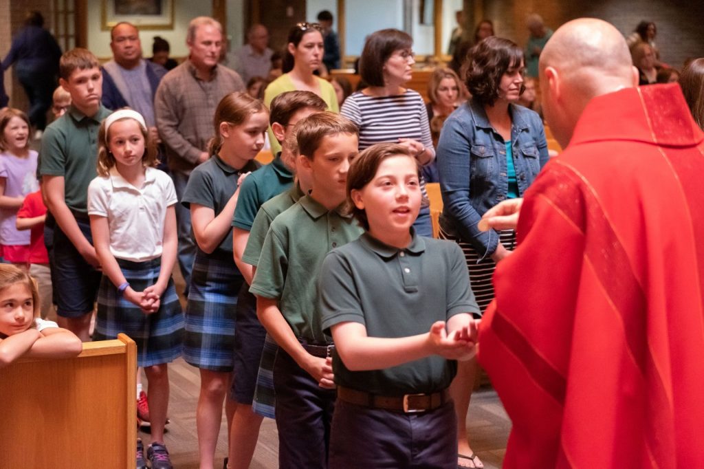 St. Paul the Apostle is a family-friendly parish. Father Peter loves to hear the noises of children during Mass and highly encourages parents to bring them! We offer many services for families, including Children’s Liturgy of the Word, Nursery, and Cry Room during Sunday Masses. We serve coffee and donuts after Sunday Masses for families to gather as a community and let the kids eat and play together. We have a very active Elementary Faith Formation program, and a Youth Group for both middle and high school-aged kids. We love having everyone involved in the Mass! Families have the opportunity to bring the gifts up during the Offertory. The Choirs are open to ages 14 and up and 3rd through 8th graders can take part in the Choristers group. Boys and girls can begin Altar Serving in 3rd grade and can become Extraordinary Ministers and Sacristans at 16 years old. Kids 14 and older can be Video Techs, and all ages can be Greeters and may serve as Ushers with their parents. We have many family-friendly events throughout the year and other volunteer opportunities the entire family can be a part of. We highly encourage families to come to Mass together and become active in the parish!