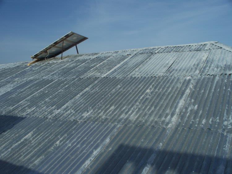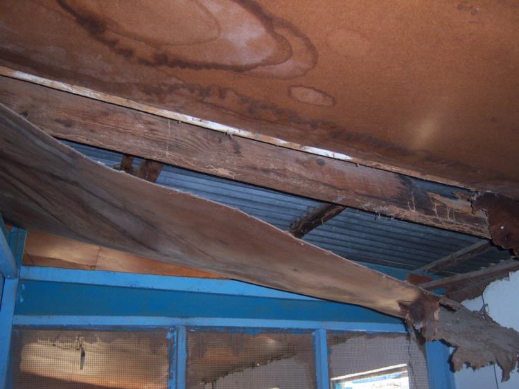 The roof on the St. Montfort parish medical clinic was leaking badly. The picture below is above the infirmary. The pressboard that is the inside surface is rotting. It was replaced for approximately $900.